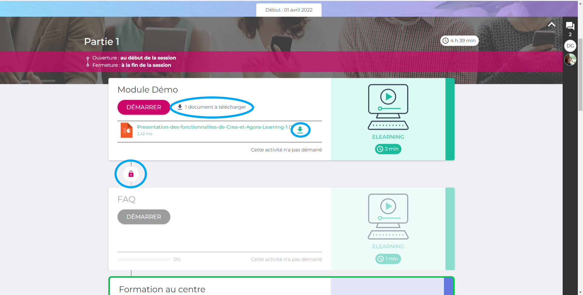Sur certains modules, l’apprenant pourra télécharger et enregistrer les documents qui lui sont mis à disposition.