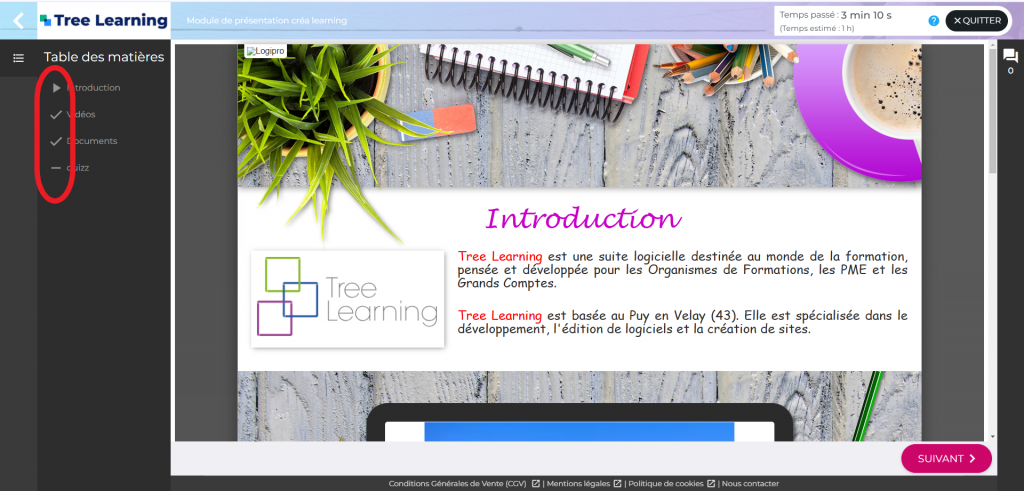 Le module e-learning peut alors commencer ! Le parcours de formation débute et il se compose de :