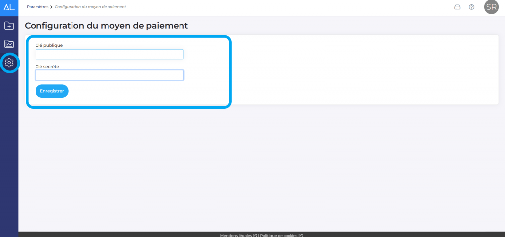 Dans ”Paramètres” > ”Catalogue” puis “Configuration du moyen de paiement”, il vous faudra préciser la clé publique et la clé secrète qui vous seront fournies via la plateforme Stripe. Vous avez maintenant tout ce qu’il faut pour effectuer de la vente en ligne !