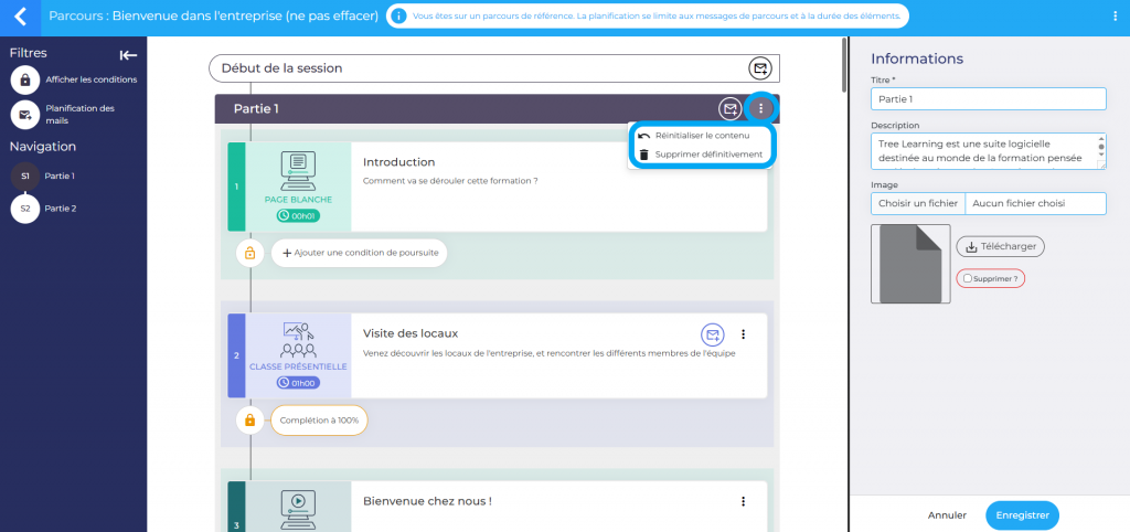 Vous pouvez supprimer une séquence entièrement ou simplement la réinitialiser pour effacer toutes les activités qu’elle contient.
