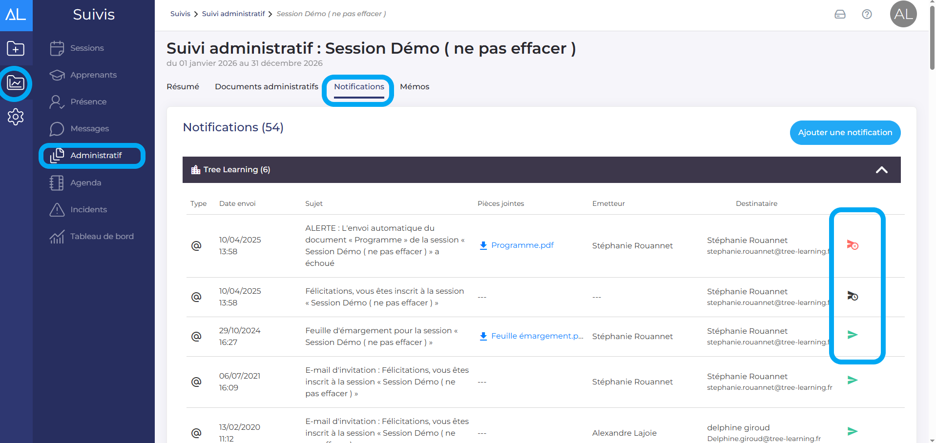 Dans l’onglet « Documents administratifs » du suivi administratif, nous avons ajouté la possibilité de renvoyer les emails à volonté.