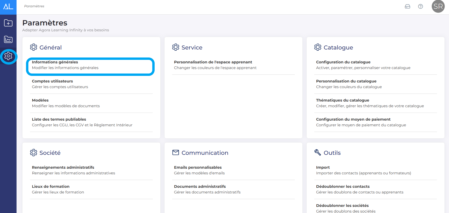 Il s’agit de définir l’endroit de la plateforme où l’on va arriver en tapant l’url simple de la plateforme. Il s’agit généralement d’un point d’entrée sur l’admin, mais vous pouvez choisir le “Catalog” ou encore le “Learning Space” (Espace apprenant).