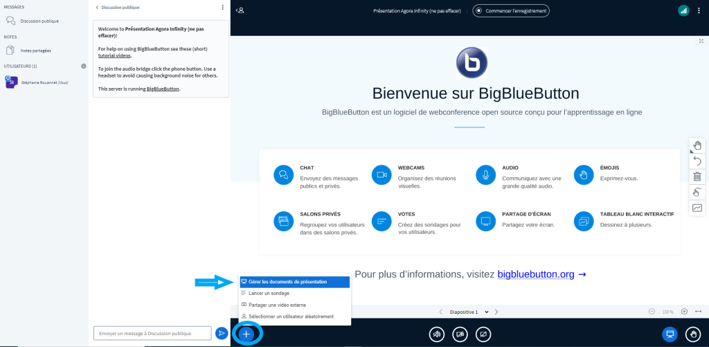 Une fois connecté à la plateforme et en attendant l’arrivée de vos apprenants, vous aurez la possibilité de charger votre présentation PDF.