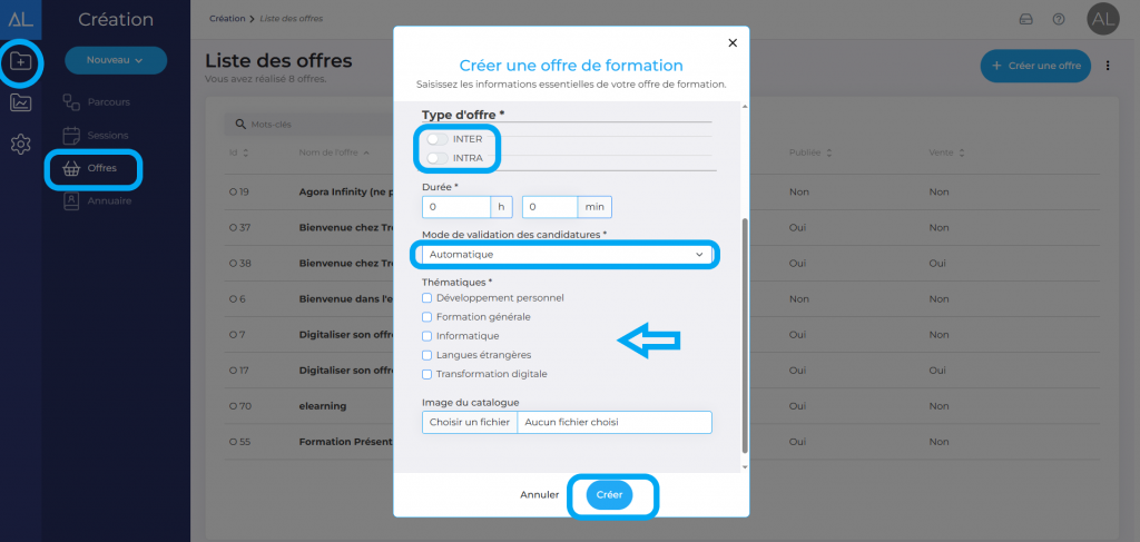 Lorsque vous choisissez la thématique associée à votre offre de formation, sachez que celle-ci est personnalisable, depuis les paramètres de la plateforme.