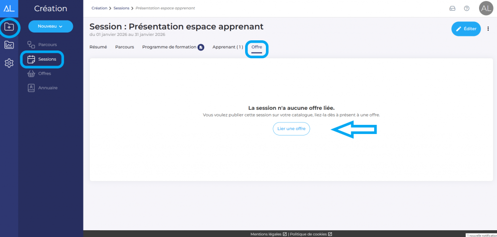 - Important : Une session ne peut être liée qu’à une seule offre.