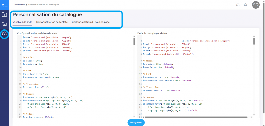 Dans ”Paramètres” > “Catalogue” puis “Personnalisation du catalogue” vous aurez la possibilité de personnaliser votre catalogue via les codes CSS.
